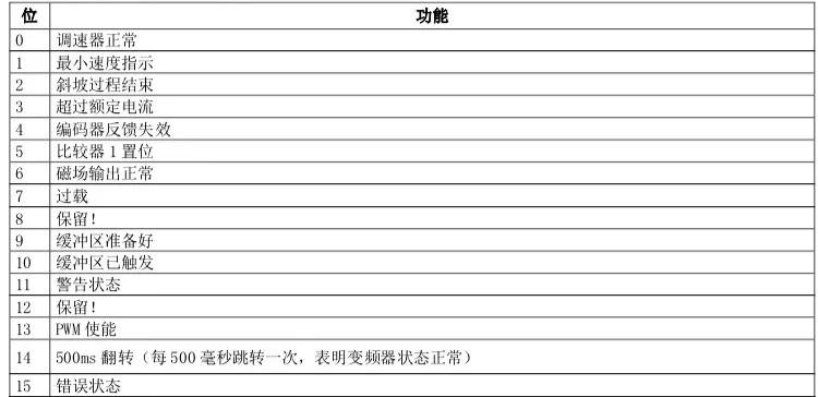 AC800變頻器狀態標志位指示在狀態標志位變量和狀態標志位變量2中。