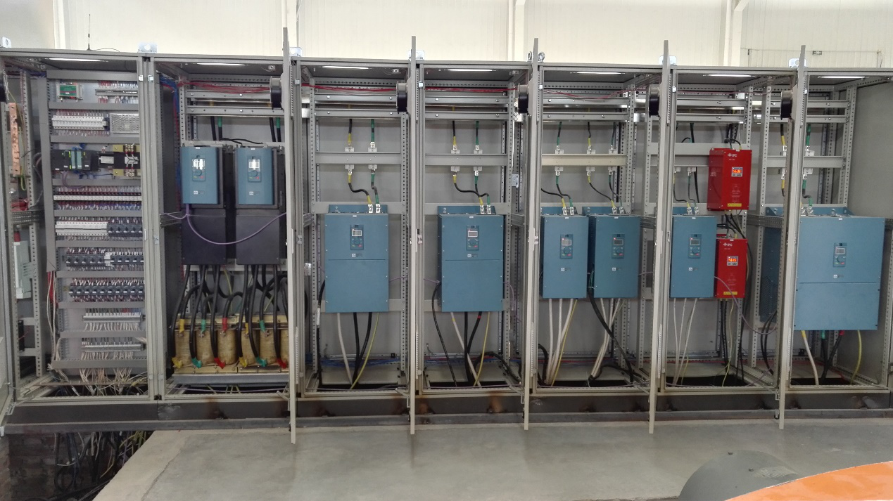 ▲使用DC790P作為整流單元,AC800CM作為逆變單元。該圖片為共直流母線系統(tǒng)應(yīng)用于線纜行業(yè)的分電機(jī)框絞。
